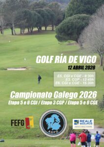 A data límite de inscripción tanto para a etapa 5 e 6 do Campionato Galego Individual como para a etapa 3 do Campionato Galego Parellas (Greensome Chapman) será o xoves 9.4.2026 as 21:00h.