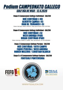 A data límite de inscripción tanto para a etapa 5 e 6 do Campionato Galego Individual como para a etapa 3 do Campionato Galego Parellas (Greensome Chapman) será o xoves 9.4.2026 as 21:00h.
